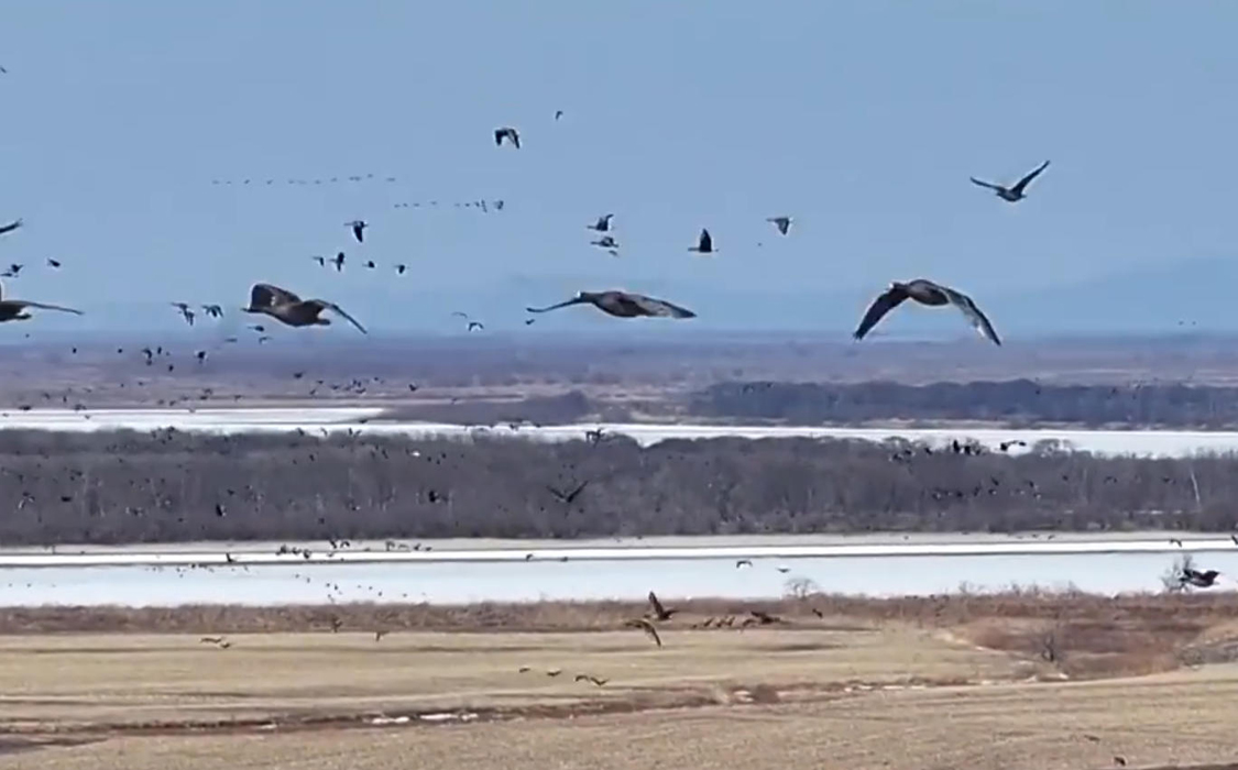 清晨松花江湧『鳥浪』千羽,一江春水律動冰城春日