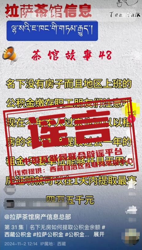 闢謠西藏拉薩市住房資金管理中心鄭重聲明