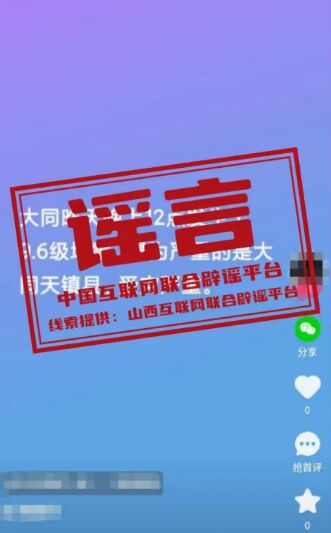 謠言山西大同發生9.6級地震?