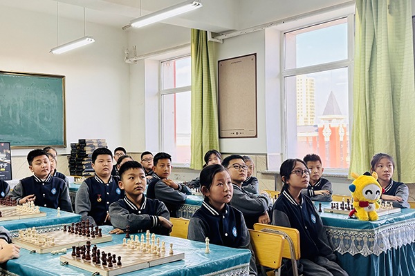 為給青少年提供更加專業的運動指導,龍江體彩邀請國際象棋棋協大師、黑龍江省博弈棋牌運動俱樂部教練崔心,哈爾濱銘豐足球俱樂部教練曹明傑來到哈爾濱德強小學校,現場為孩子們講授和指導國際象棋、足球等體育運動的知識和技藝。