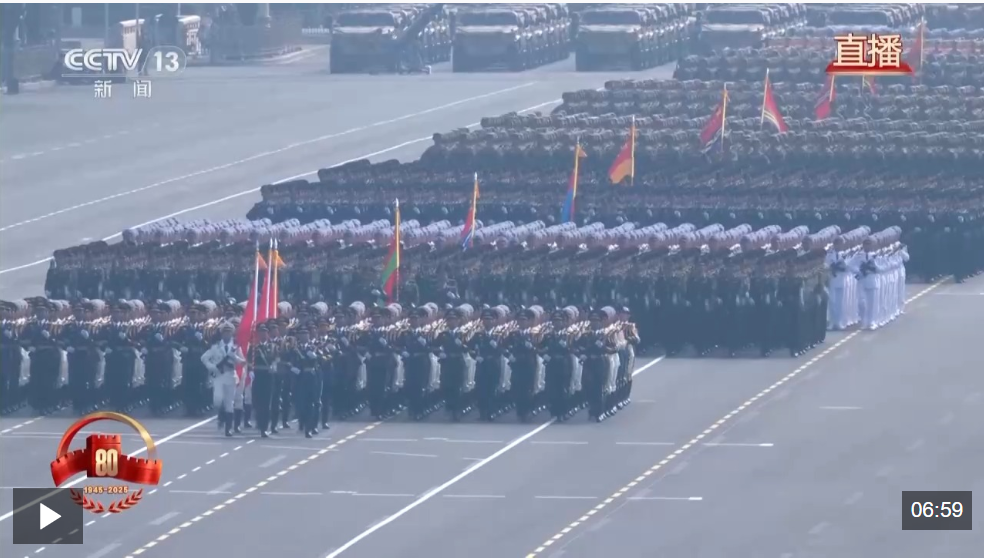 9月3日上午,紀念中國人民抗日戰爭暨世界反法西斯戰爭勝利80周年大會在北京天安門廣場隆重舉行,以盛大閱兵儀式,同世界人民一道紀念這個偉大的日子。