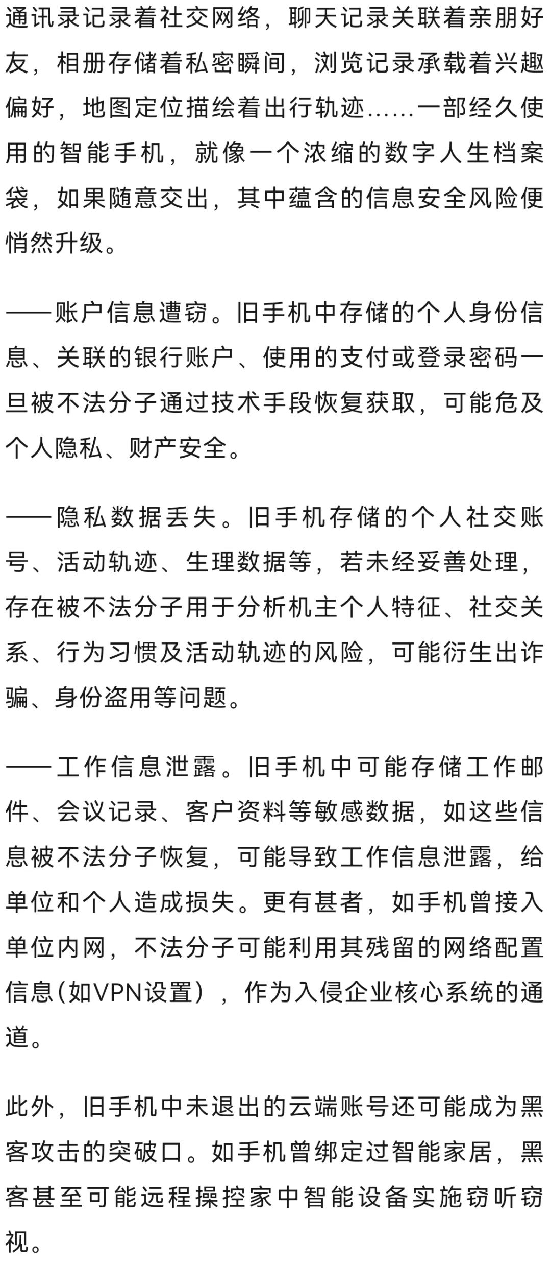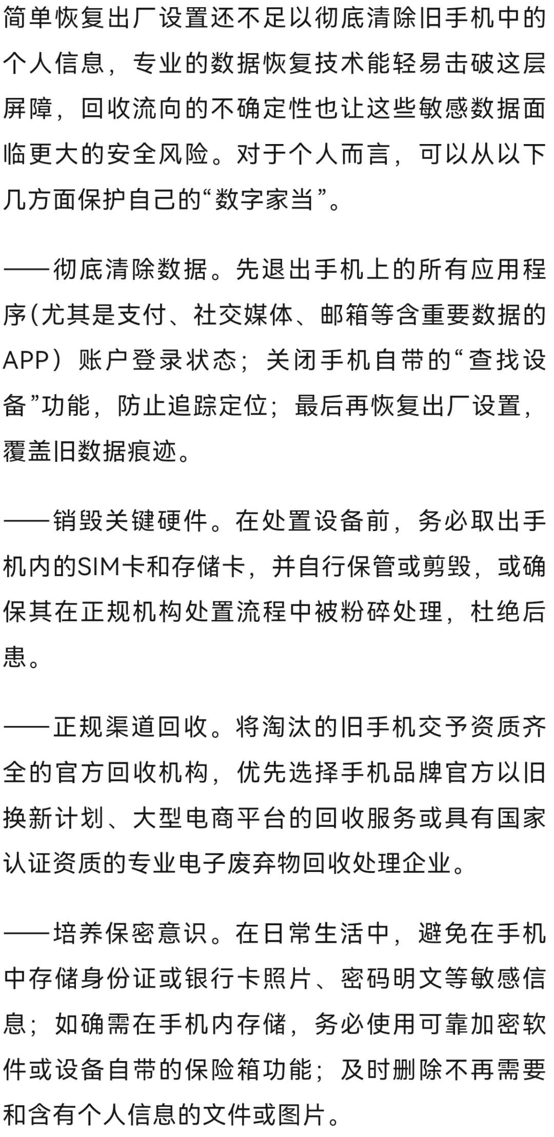 據微信公眾號『國家安全部』8月13日消息,『舊手機、舊電腦換菜刀、換不鏽鋼盆嘍!』這與時俱進又略帶誇張的吆喝,您是否也曾聽過?一些閑置的『電子家當』留著無用,很多朋友會考慮出手置換,主打一個該省省該花花。那麼,其中的風險隱患您又是否全然了解?不如和小安一起盤一盤,如何『變廢為寶』又不『引火燒身』。