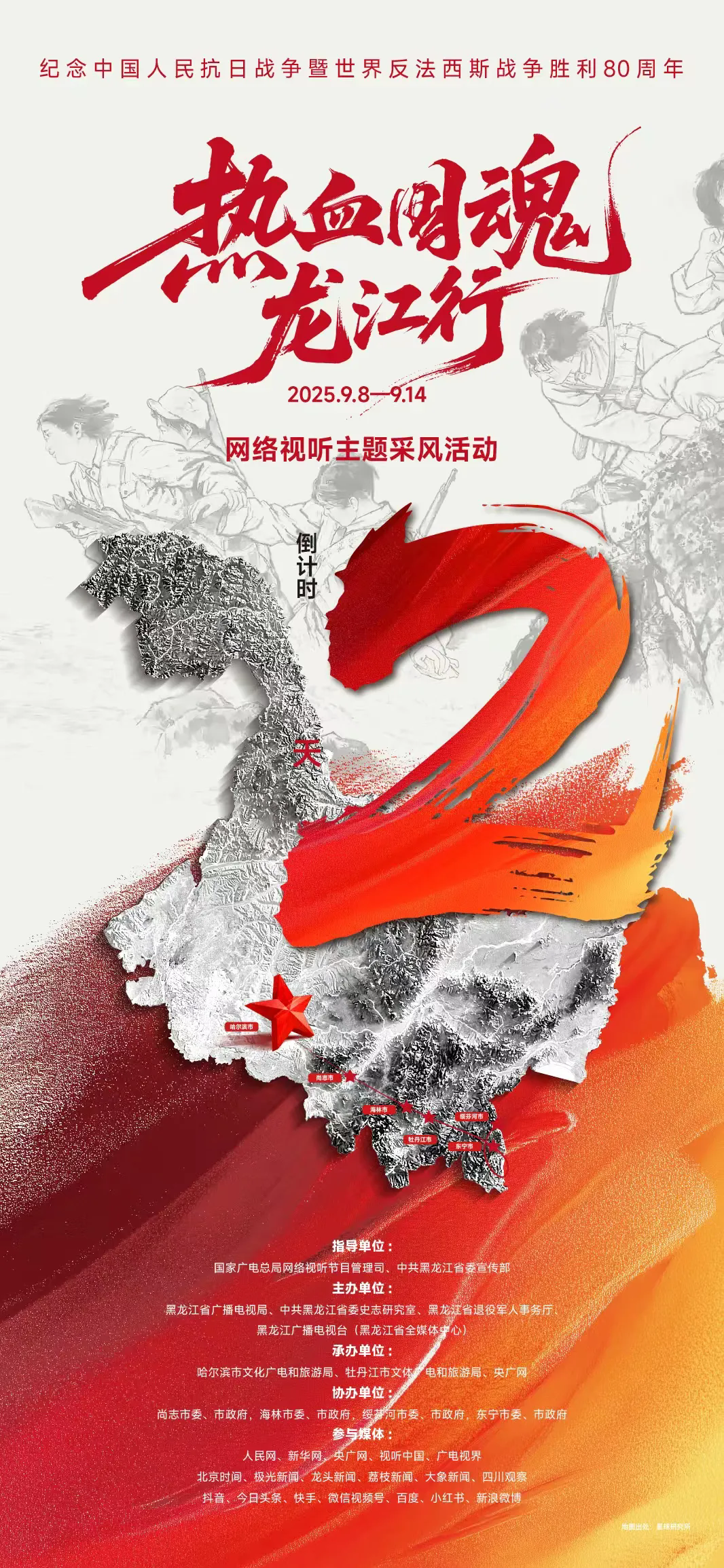 當歷史的長風掠過白山黑水,當時代的浪潮激蕩龍江大地,一場承載著紅色記憶與時代使命的『熱血國魂·龍江行』網絡視聽主題采風活動,將於9月8日至14日在黑龍江省啟幕。
