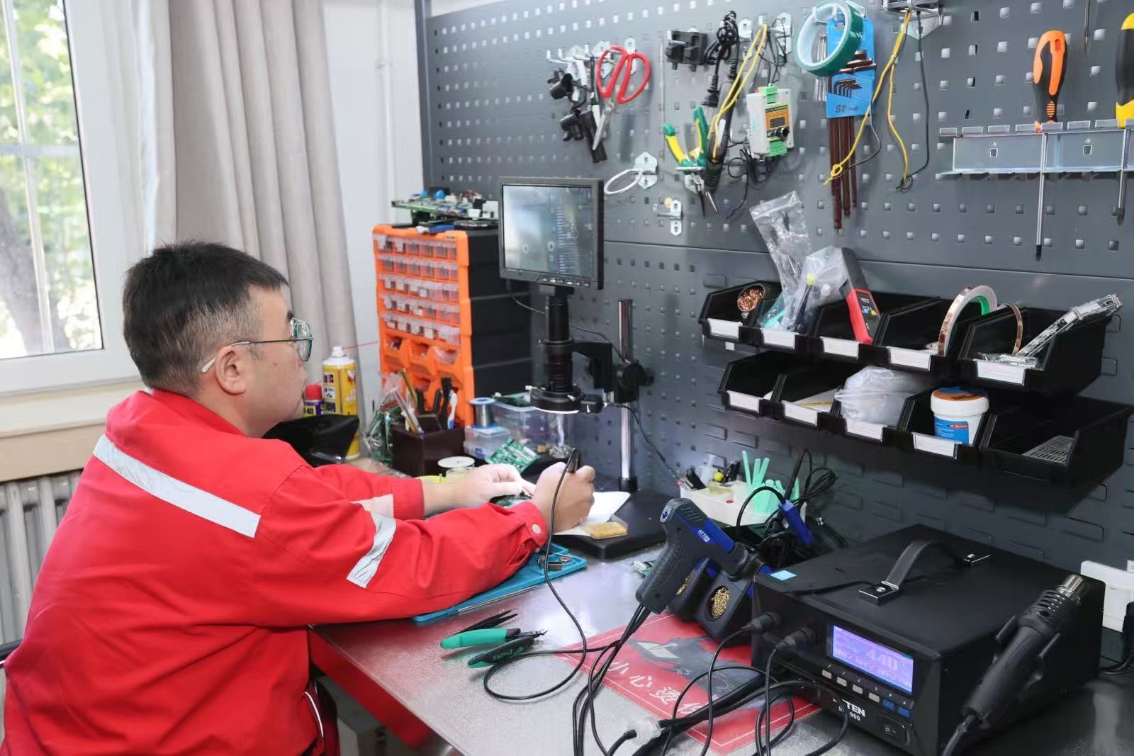 18日,由黑龍江省總工會主辦的『牢記回信囑托鍛造產業鐵軍』全國網絡媒體龍江行活動走進大慶油田有限責任公司第三采油廠數字化運維中心,走進這個新時代產業工人創新陣地——劉可夫勞模創新工作室,在這個擺滿電路板、零部件、滿牆手繪電路解析圖的工作室內,記者見到了數控運維室電工班長、首席技師劉可夫,他用23年的堅守與創新,練就了一套『望、聞、聽、試』的故障查找方法,被大家稱為油田『數維醫生』。