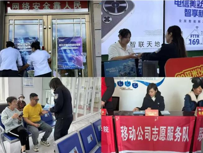 9月17日,黑河市圍繞『網絡安全為人民,網絡安全靠人民——以高水平安全守護高質量發展』主題,聯合三大運營商開展網絡安全宣傳周『電信日』主題活動,工信局和三大運營商分管領導、工作人員參加活動。工作人員深入臨街商鋪和居民小區,用實際案例說明網絡安全重要性及防詐方法,提昇群眾網絡安全意識和自我保護能力。各營業廳利用LED顯示屏循環播放網絡安全宣傳標語與防詐視頻,營造宣傳氛圍。