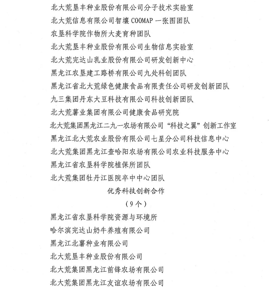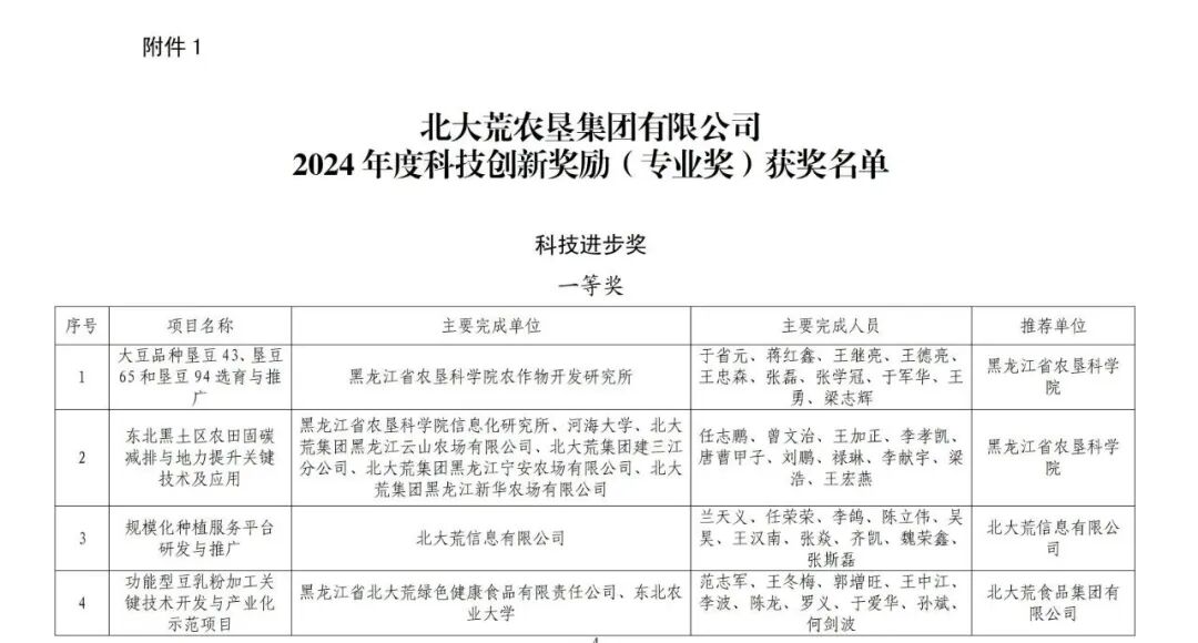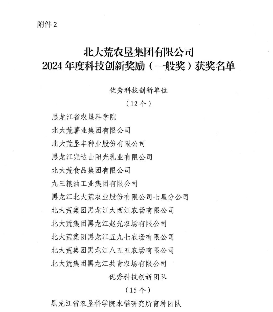 9月8日,北大荒集團正式公布2024年科技創新獎勵名單,43個優秀成果憑借科技創新實力入選科技創新獎勵(專業獎)獲獎名單,106個單位、團隊和個人憑借科技創新領域突出表現入選科技創新獎勵(一般獎)獲獎名單。