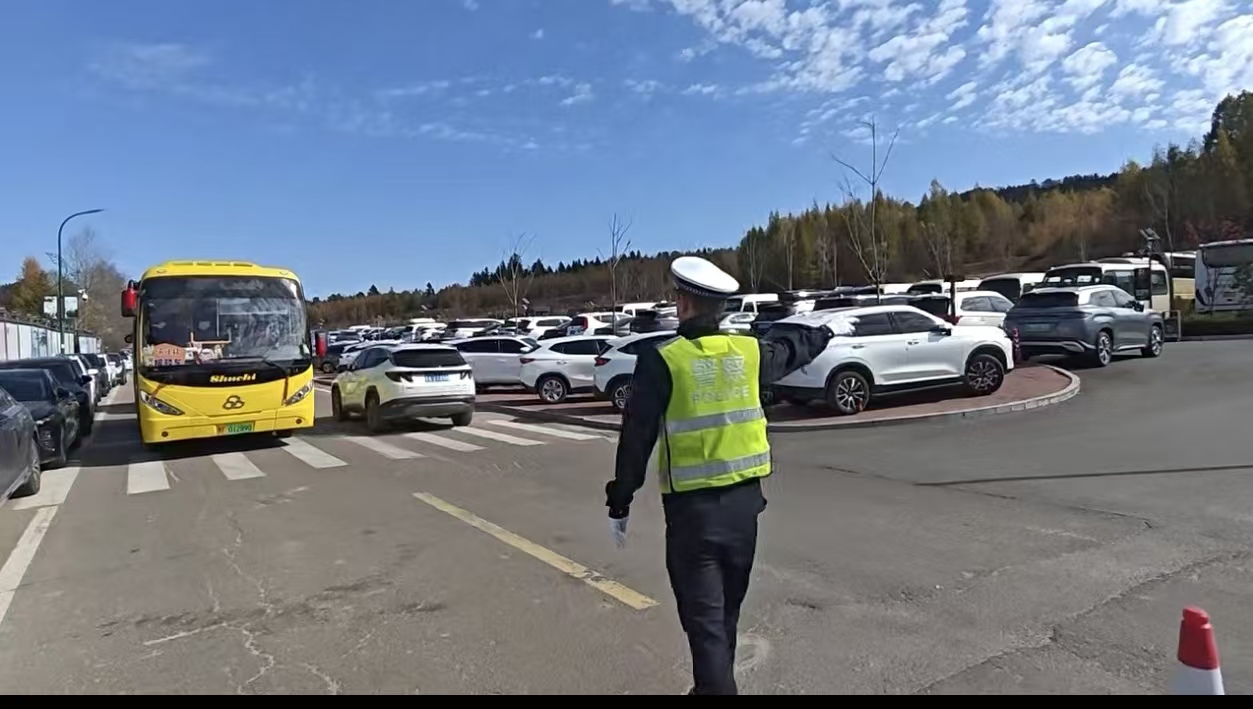 多警種在轄區主乾道、景區連接線聯合值守,他們頂著烈日或夜色,實時疏導交通、維護秩序,用『看得見的守護』和『聽得見的提醒』,確保道路交通環境安全有序。