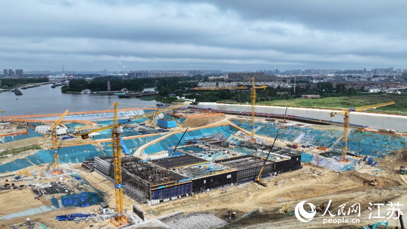 淮河入海水道淮安樞紐二期施工中。人民網記者馬曉波攝