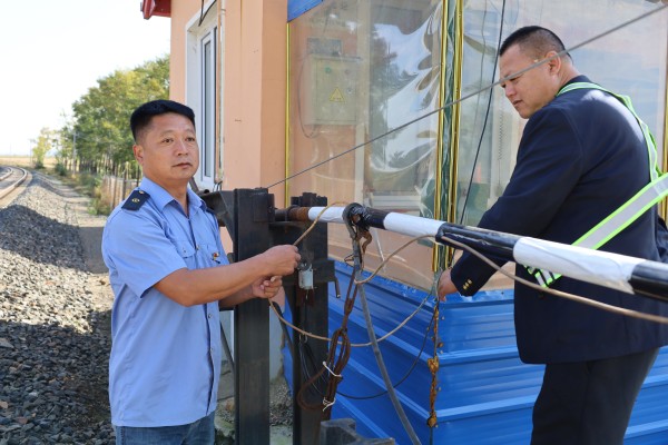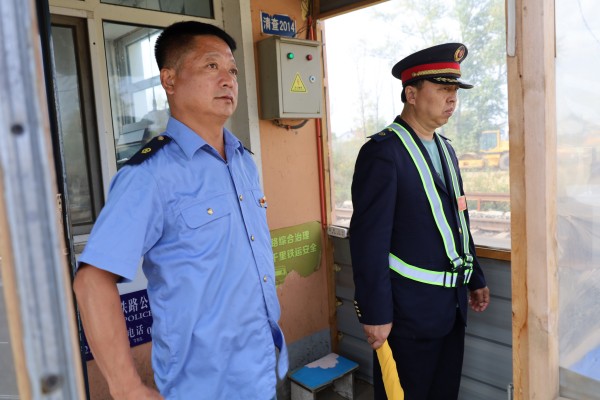 『十一』期間工長張利劍與道口員標准化接發每一輛列車 季海龍 攝