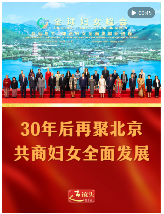 10月13日上午,國家主席習近平出席全球婦女峰會開幕式並發表主旨講話。1995年秋,北京世界婦女大會召開,樹立起全球婦女事業發展的一座裡程碑。30年後,在這收獲的季節,中國同聯合國婦女署在北京合作舉辦全球婦女峰會,傳承弘揚北京世婦會精神,為加速婦女全面發展新進程譜寫新篇。