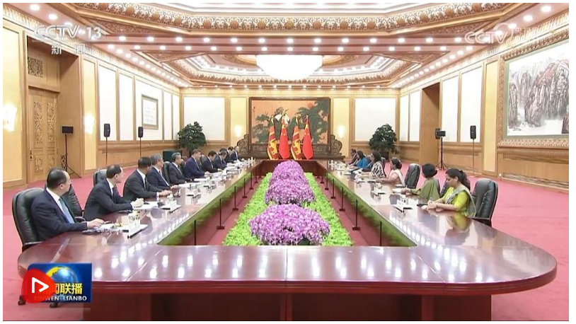 10月14日上午,國家主席習近平在北京人民大會堂會見來華出席全球婦女峰會的斯裡蘭卡總理阿馬拉蘇裡亞。