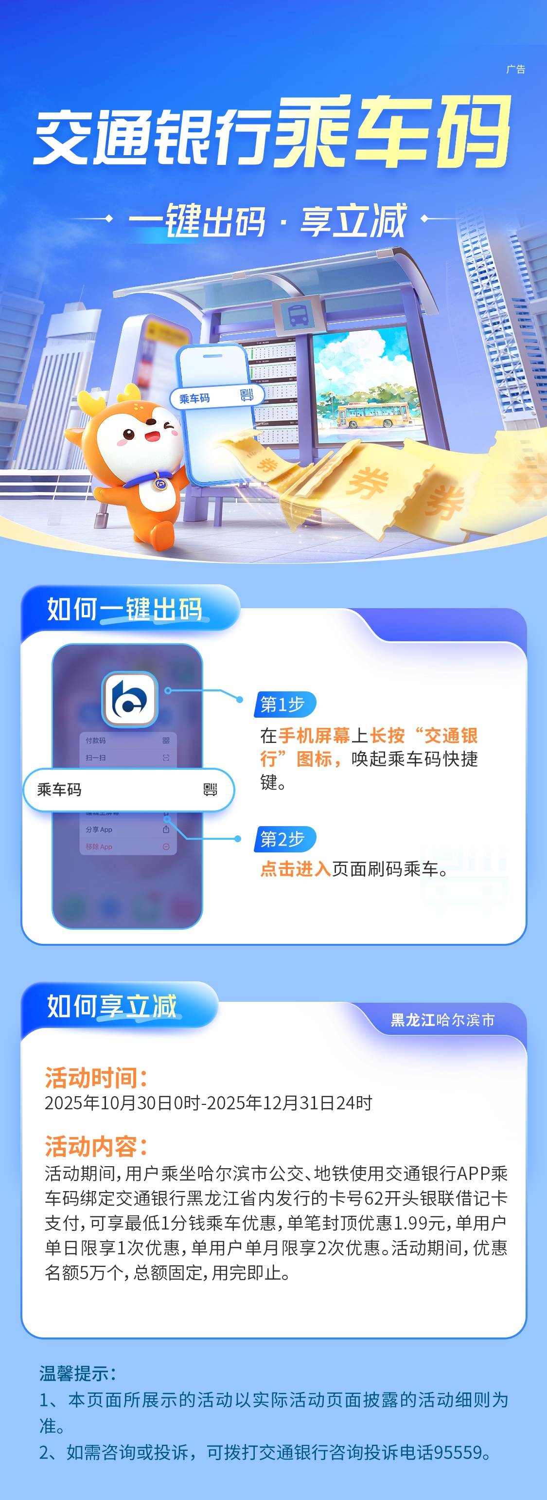 交通銀行乘車碼,一鍵出碼·享立減!