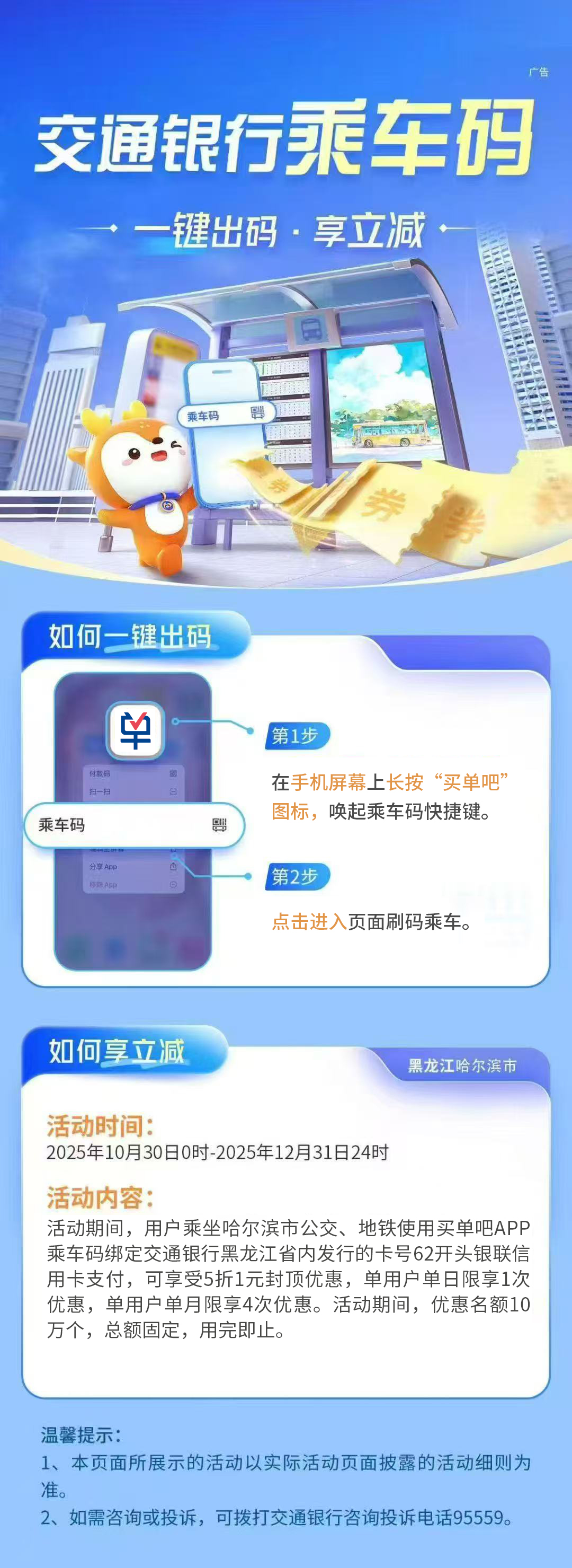 交通銀行『買單吧』,一鍵乘車立享優惠