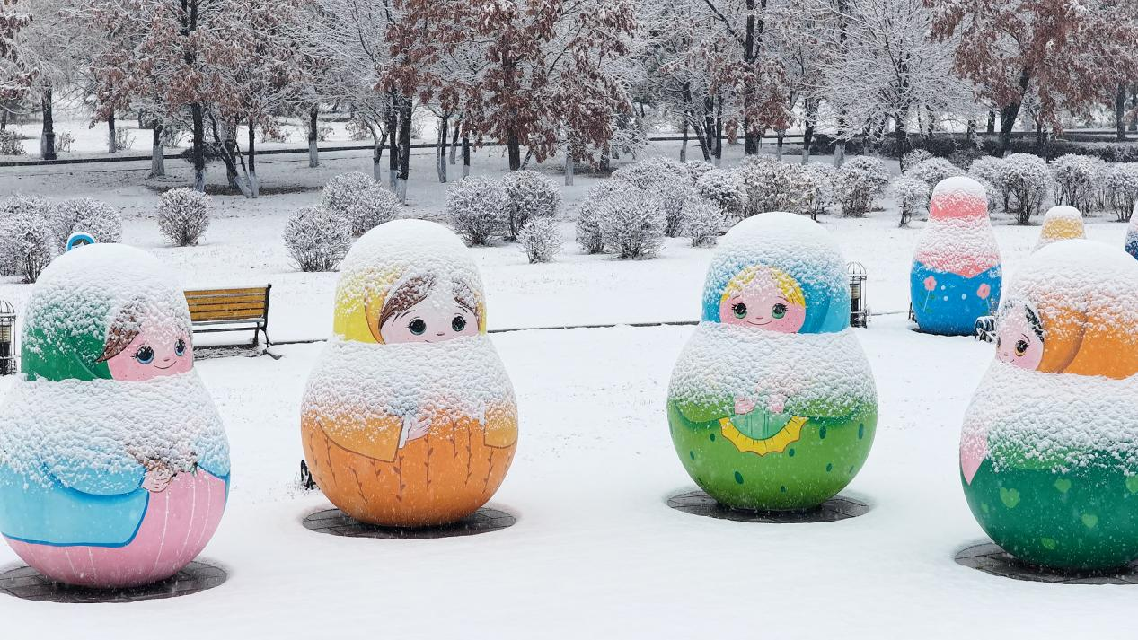 作為城市地標之一的俄羅斯風情園,在厚厚積雪的裝點下,煥發出別具一格的異域風情。往日色彩明快的套娃雕塑,此刻仿佛披上了一件件純白的『雪衣』,在陽光的照射下,顯得格外醒目。市民們與這些披上冬裝的『伙伴們』親密合影,用鏡頭記錄下這限定版的冬日浪漫。歡聲笑語,不絕於耳。
