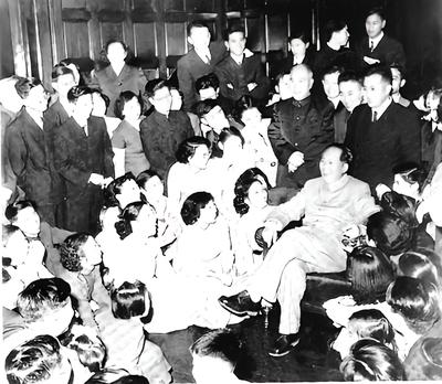 1957年11月17日,毛澤東主席在莫斯科大學大禮堂接見中國留學生