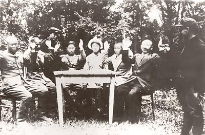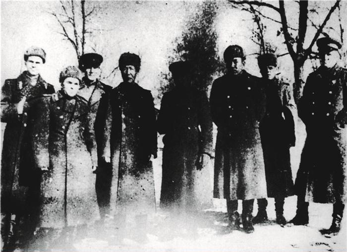 東北抗聯教導旅旅長周保中(左四)、政治副旅長李兆麟(左六)與蘇聯遠東軍區軍官合影
