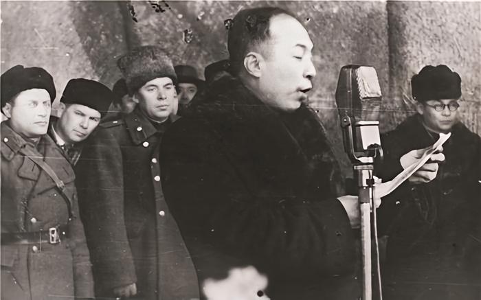 1946年,李兆麟在哈爾濱慶祝蘇聯紅軍建軍節大會上講話