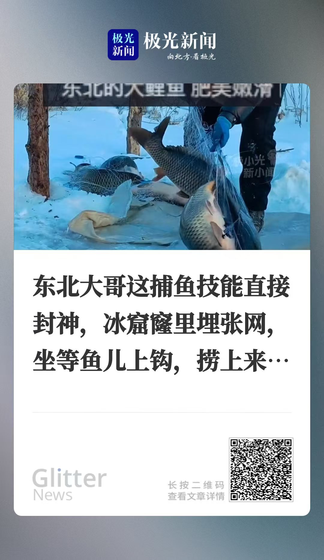 東北大哥這捕魚技能直接封神,冰窟窿裡埋張網,坐等魚兒上鉤,撈上來的冬魚個個膘肥體壯,隔著屏幕都要流口水了