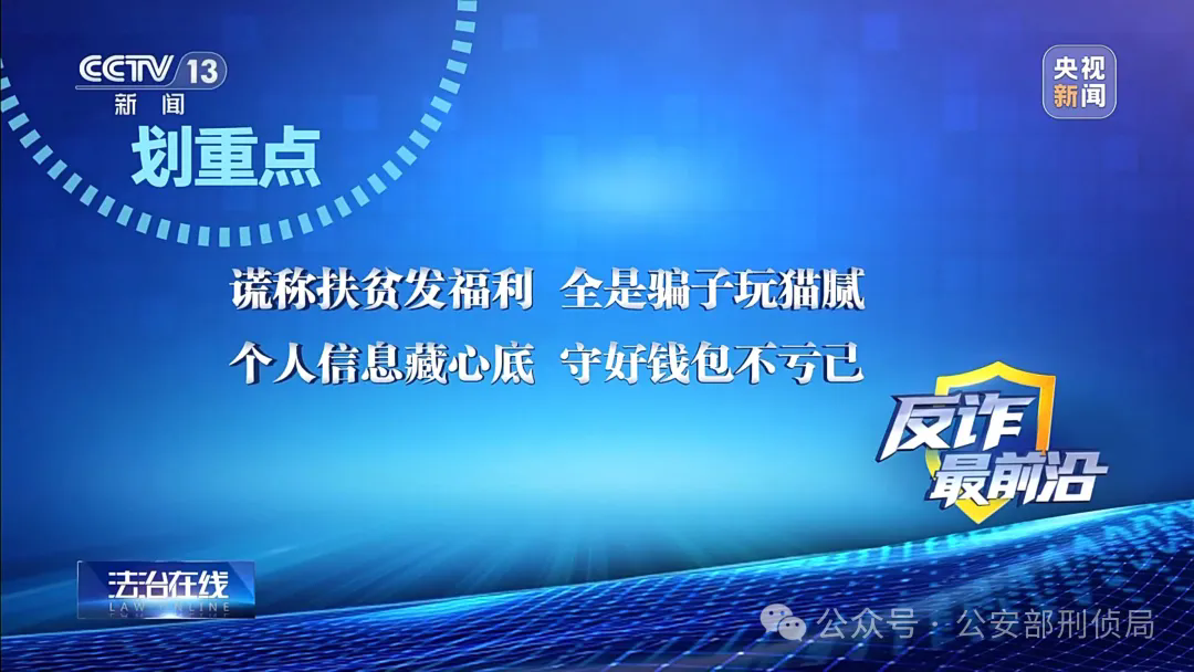反詐最前沿,我們一起來劃重點:謊稱扶貧發福利,全是騙子玩貓膩。個人信息藏心底,守好錢包不虧己。