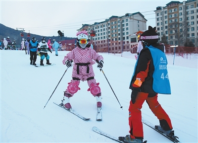 黑龍江哈爾濱亞布力滑雪旅游度假區內的滑雪愛好者。