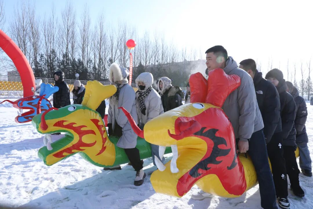 壓軸登場的『雪地龍舟』項目,將現場氣氛推向頂點。隊員們跨坐充氣龍舟,緊握把手、同心協力向前滑動。冰面的阻力雖增加了前行的難度,卻絲毫擋不住大家團結協作的衝勁與熱情。紅色的龍舟在皚皚白雪的映襯下格外醒目,劃出的不僅是競技的軌跡,更是鄰裡同心的溫情弧線。『今天和大家一起挑戰「雪地龍舟」,太盡興了!原來全民健身離我們這麼近,就在社區裡、在生活中。希望這樣的活動能多多舉辦,讓更多人感受冰雪運動的樂趣。』市民趙琳的話語道出了眾多參與者的心聲。