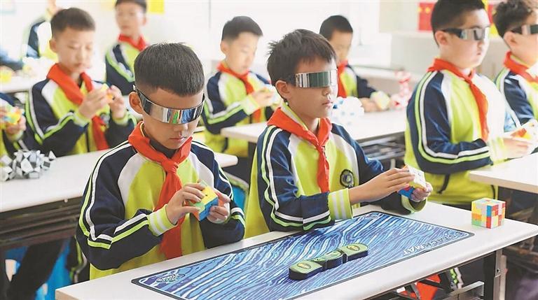 穆棱市立德小學獲教育部『第七批鄉村溫馨校園建設典型案例學校『稱號。圖為該小學魔方特色課程展示。圖片由受訪單位提供