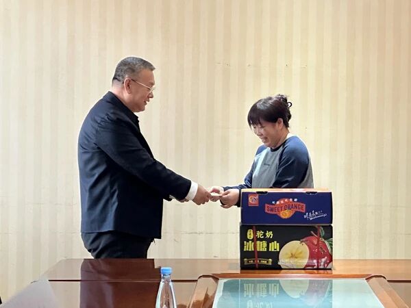 在特渠營銷事業部,北大荒完達山乳業黨委委員、副總經理魏海波將慰問金和新鮮水果送到困難職工和一線職工代表手中,並與大家親切交談,細致詢問近期市場活動推進、產品銷售態勢及工作難點需求,充分肯定營銷團隊昂揚向上的精神風貌和階段性成效,向大家為公司產品推廣、市場拓展付出的辛勤付出致以誠摯感謝。她強調,一線營銷人員是公司連接市場與消費者的重要橋梁,更是市場開拓的核心力量。公司將始終作為堅強後盾,全方位為一線工作提供支持、保駕護航。她勉勵大家勇闖市場、銳意進取,在產品推廣與客戶服務中爭當先鋒,為公司市場拓展再建新功。