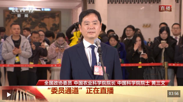 今天(3月4日)下午,全國政協十四屆四次會議首場『委員通道』在人民大會堂舉行,全國政協委員、中國農業科學院院長、中國科學院院士黃三文接受了總臺記者采訪。