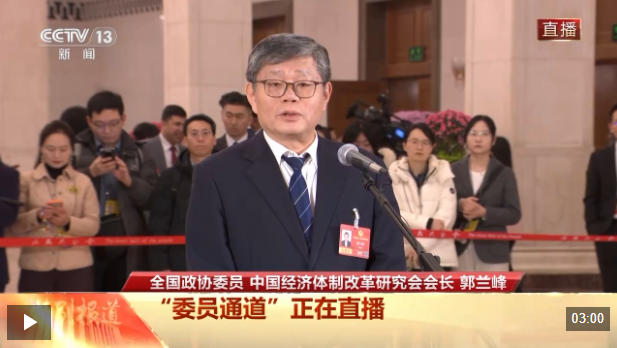 今天(3月4日)下午,全國政協十四屆四次會議首場『委員通道』在人民大會堂舉行,全國政協委員、中國經濟體制改革研究會會長郭蘭峰接受了記者采訪。