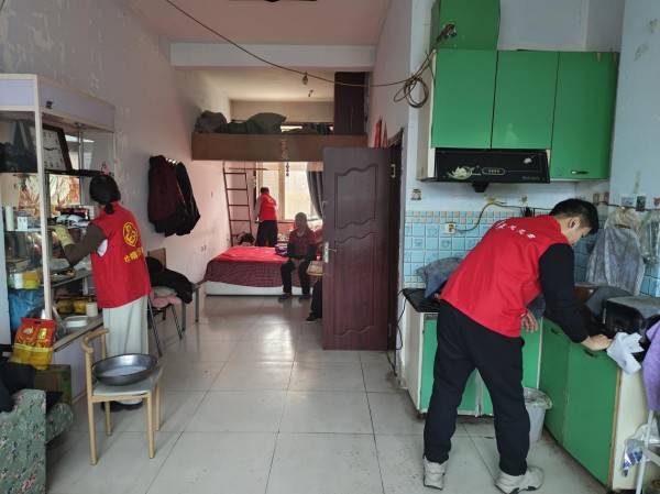 同江市青年志願者深入獨居老人家中打掃衛生