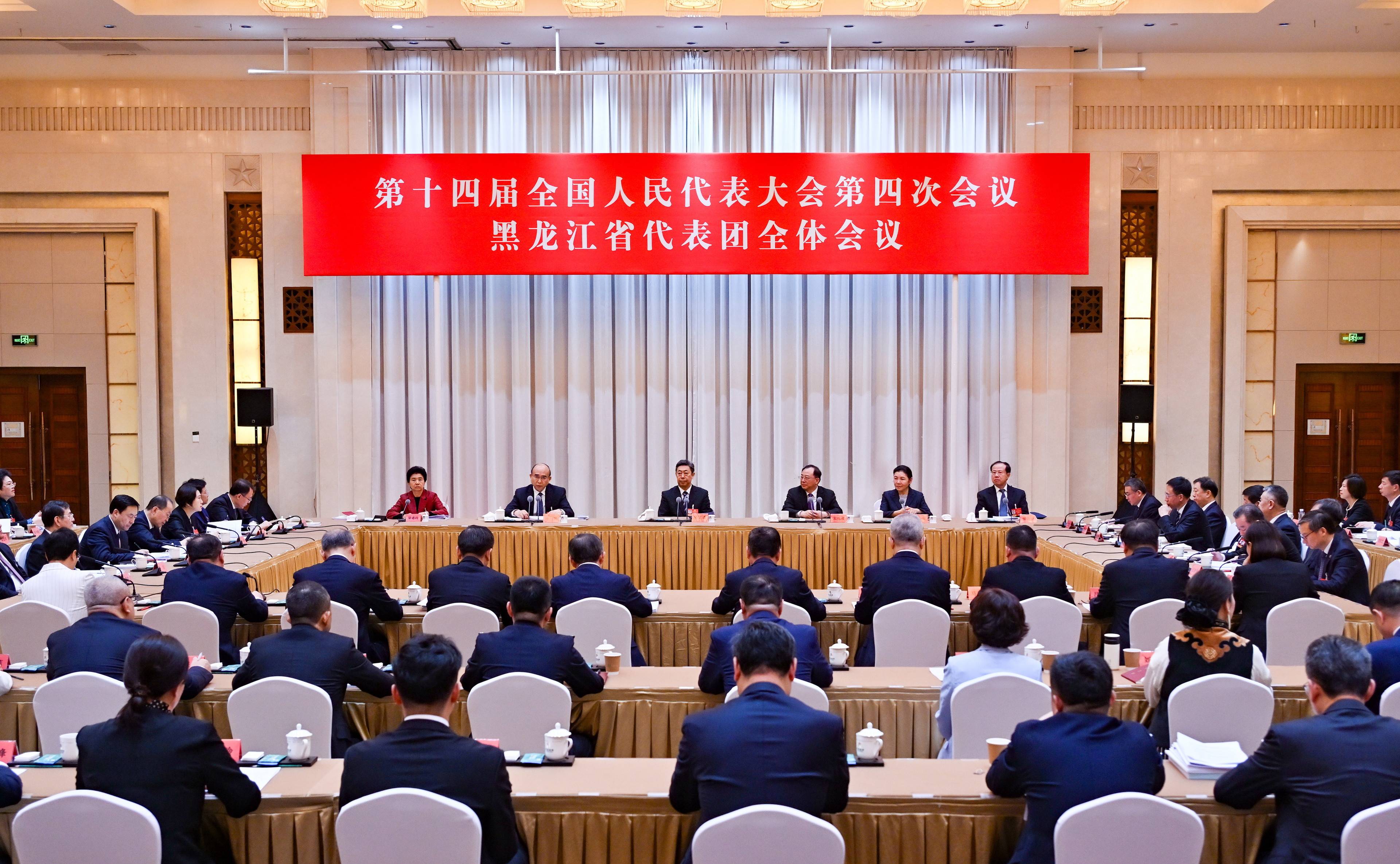 出席十四屆全國人大四次會議的黑龍江代表團召開第三次全體會議