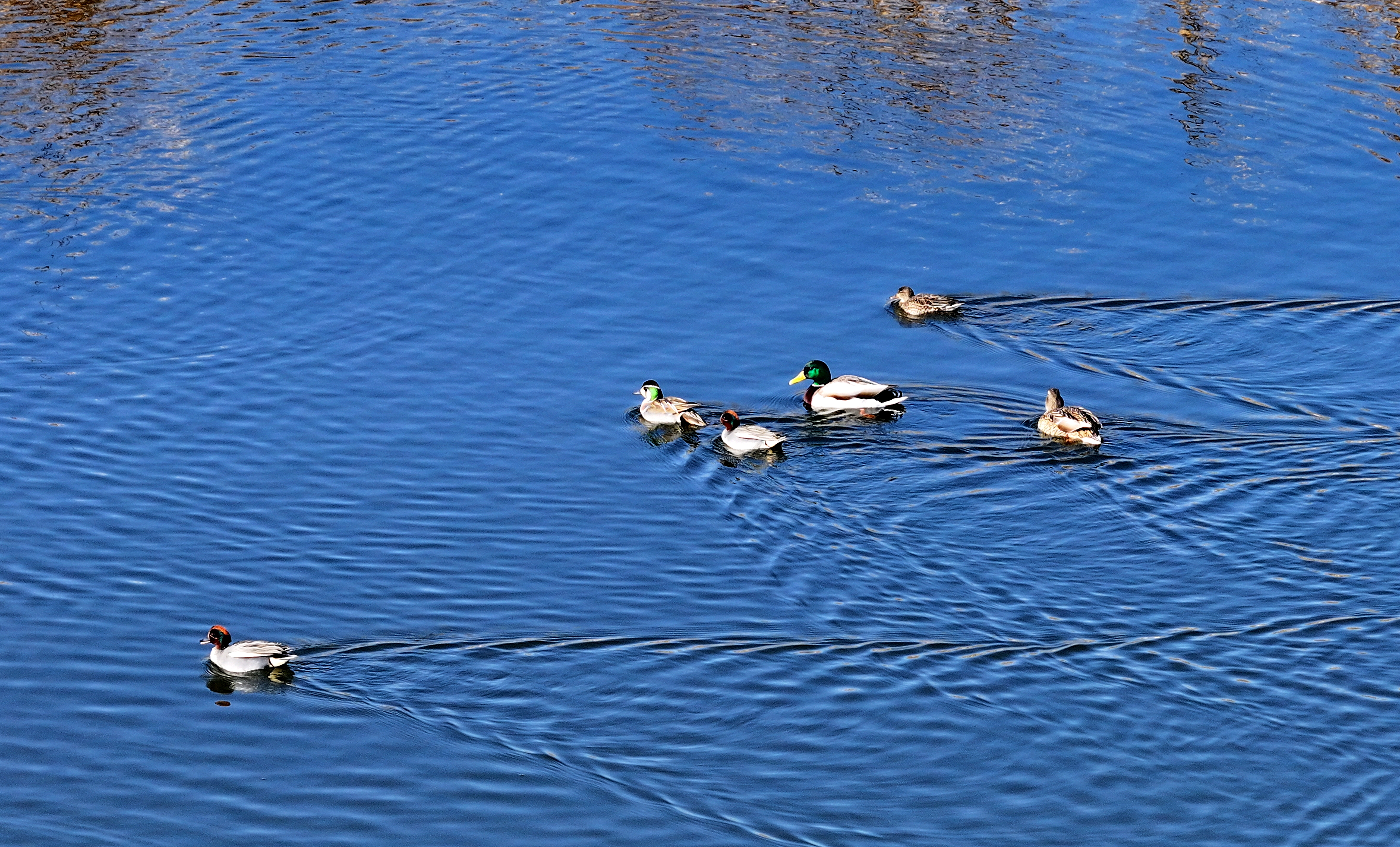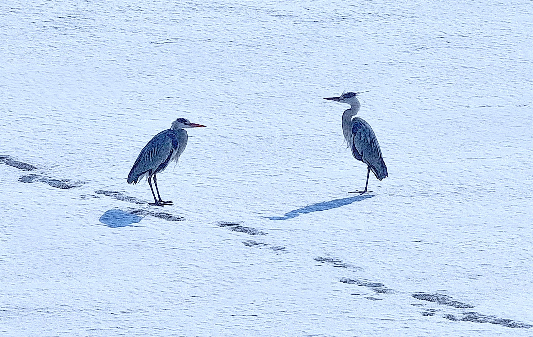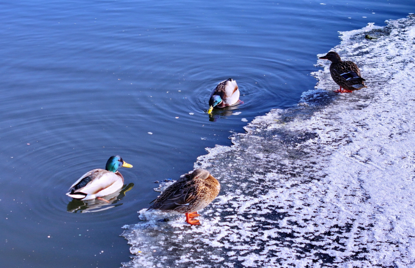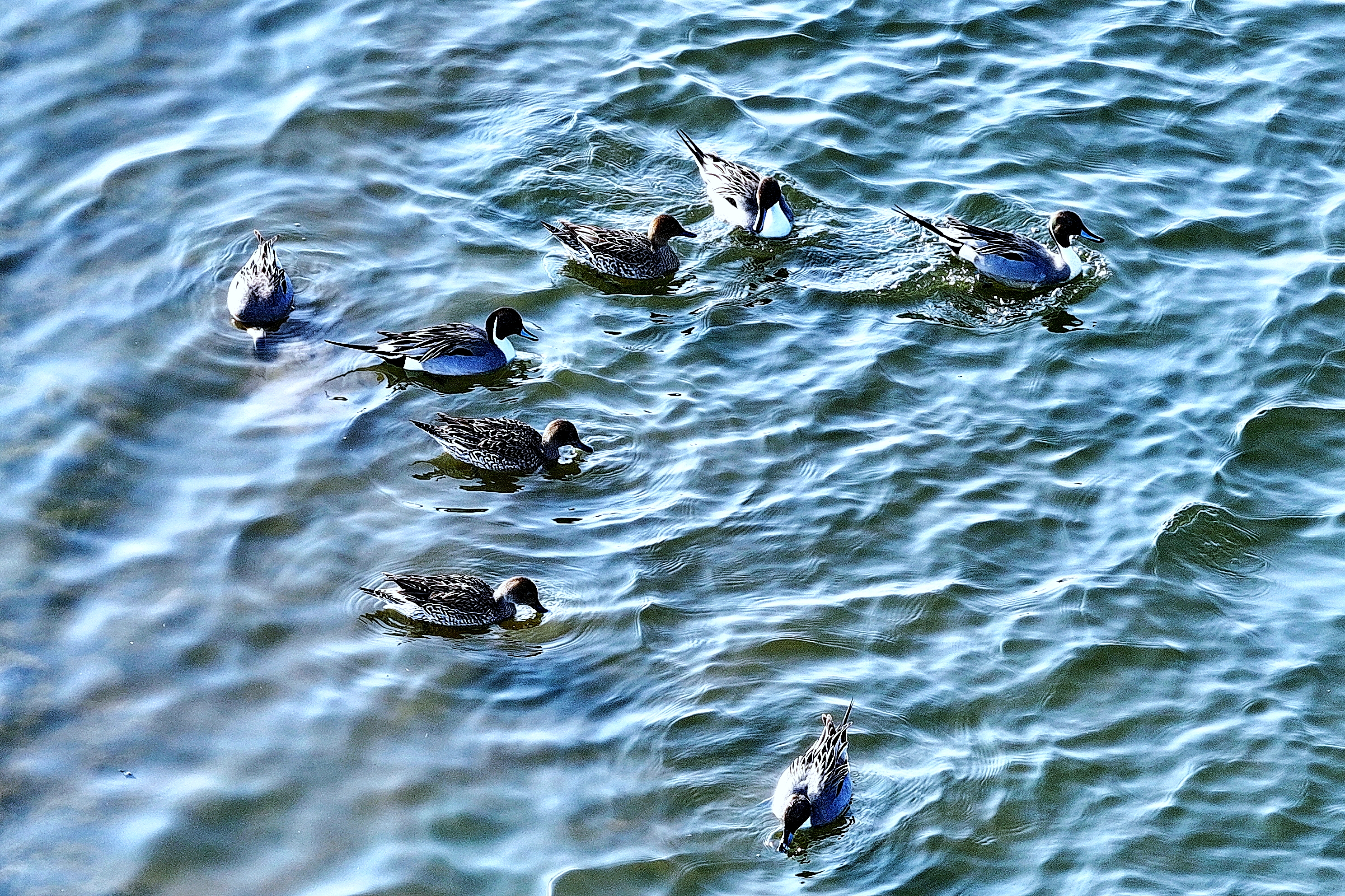 白臉鸕?的黑羽在陽光下泛著光澤,或駐足冰面休整,或潛入水中覓食,留下圈圈漣漪;蒼鷺亭亭立於淺灘雪地中,舒展修長羽翼,盡顯優雅身姿;綠頭鴨、赤麻鴨和針尾鴨等穿梭於初融的水域間,振翅追逐,嬉戲打鬧,清脆啼鳴此起彼伏,盡享春日暖陽。