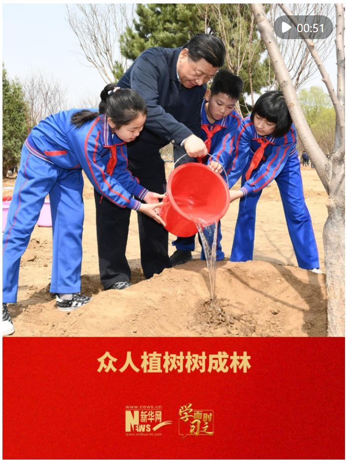 黨的十八大以來,習近平總書記每年都會身體力行,參加首都義務植樹活動。他強調,讓我們從自己、從現在做起,把接力棒一棒一棒傳下去。