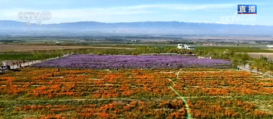 記者來到新疆伊犁州伊寧縣東北部的天山花海園區,這裡曾經是6萬畝戈壁荒灘的核心區。五顏六色的花朵匯成了一片絢爛的花海,這種黃色、白色、橙色開在一起的花朵叫虞美人,陽光下自帶油畫般的質感。而這片紫色的花叫作二月蘭,浪漫又唯美。從每年的這個時候開始,這片田野就進入了長達7個月的花季,各種鮮花次第盛開,一直開到十月。眼下這裡杏花落、果花開,大片的香妃海棠、西梅陸續進入盛花季,成了各地游客春季旅游的打卡地。人們在春光裡盡情享受繁花盛開的美景,最多的時候一天能達到上萬人。