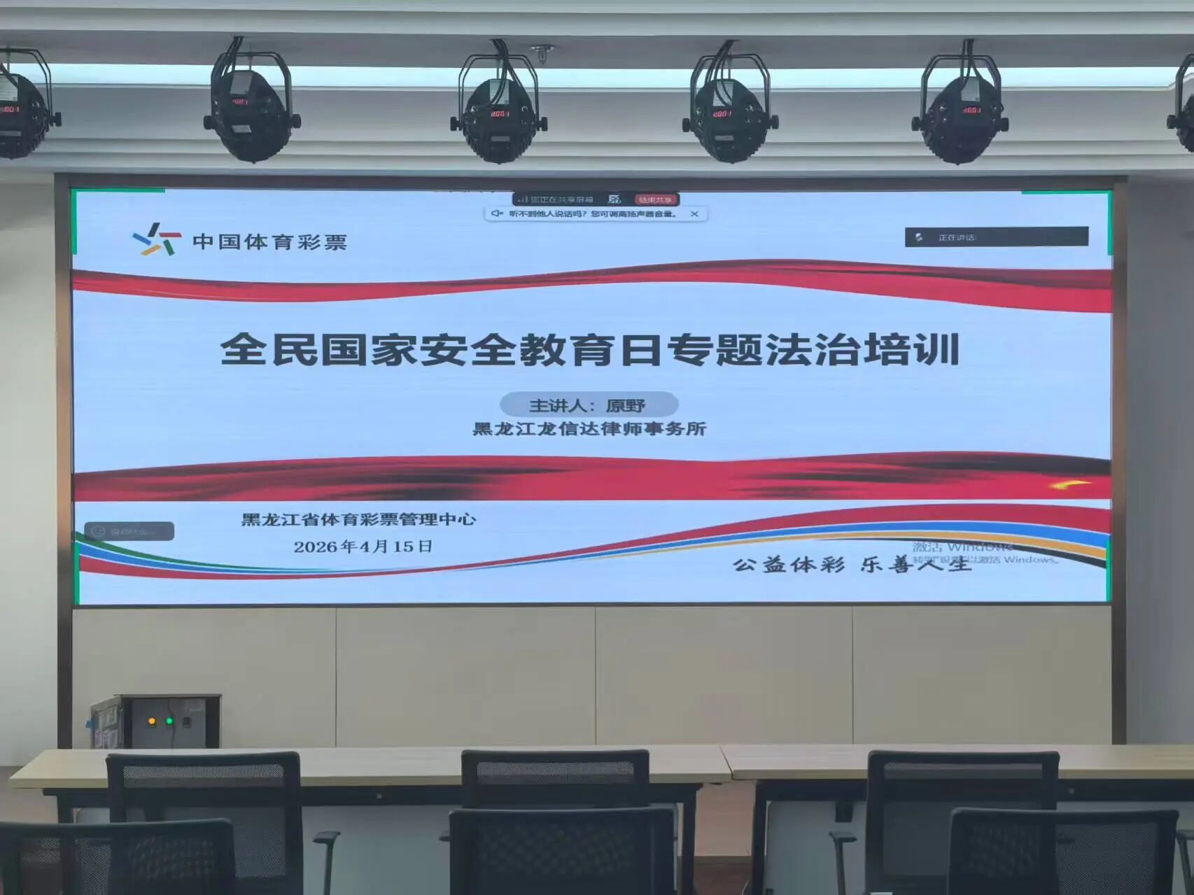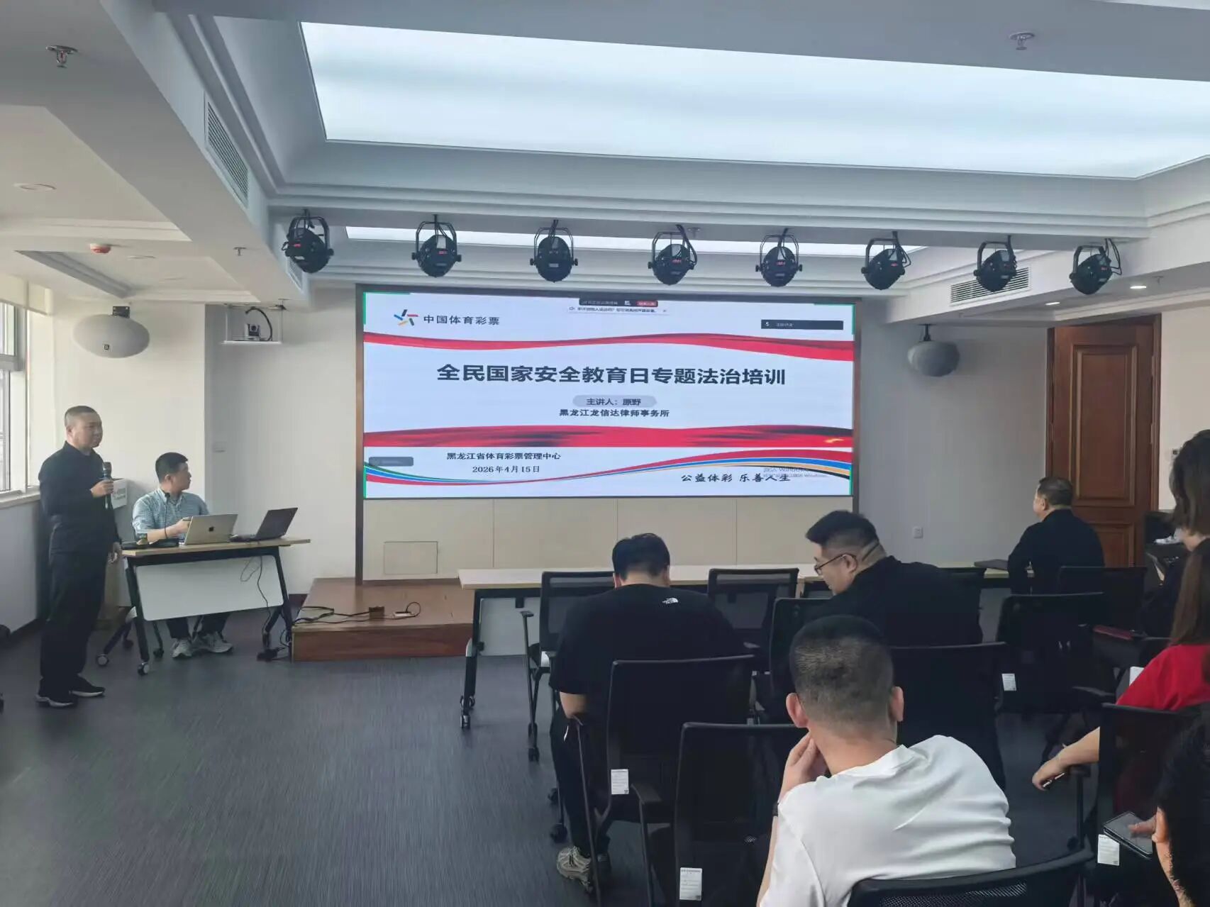 為深入貫徹落實省司法廳和省普法辦《關於開展2026年全民國家安全教育日主題普法宣傳活動的通知》精神,切實增強全省體彩系統乾部職工的國家安全意識與法治素養,4月15日,黑龍江省體育彩票管理中心組織開展『全民國家安全教育日專題法治培訓』專題講座。省體彩中心全體員工、各市(地)體彩銷售機構全體員工及全省體彩專管員共同參與了此次培訓。