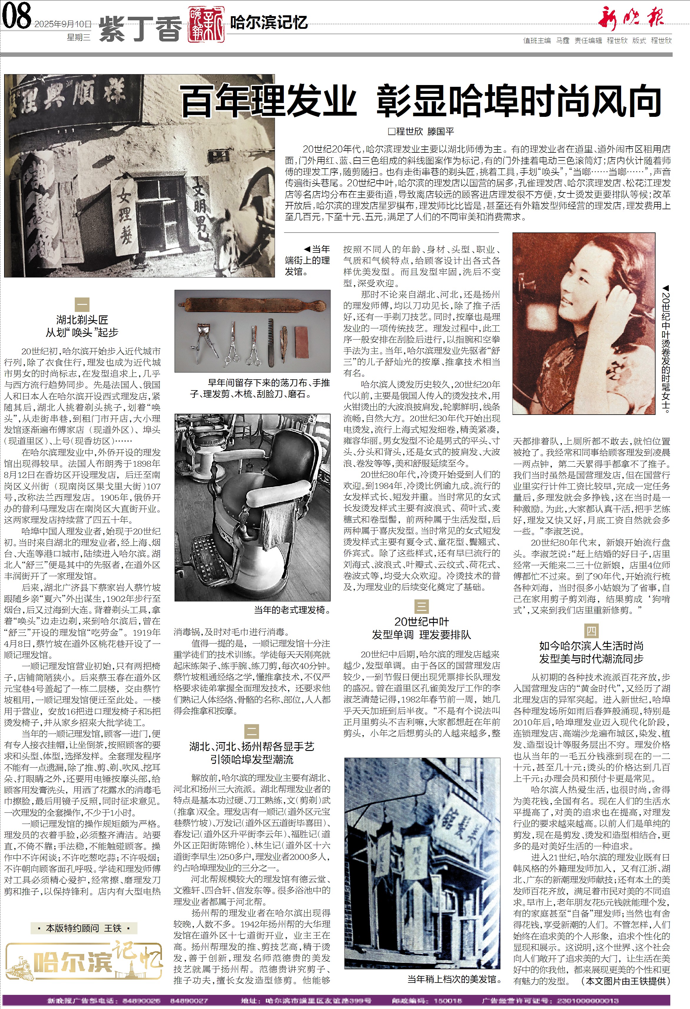 作者通過走訪老理發匠的後人、查閱地方史料,梳理哈爾濱理發業的起源、發展脈絡,用『小切口』細節描寫勾勒大時代壯闊場景,既記錄技術流派特色,又折射城市審美與民生變遷,文風質朴厚重,兼具史料性與可讀性。 本文刊發後,喚起老哈爾濱人對國營理發店、傳統理發技藝的集體記憶,引發市民對城市生活史的討論,帶動『老哈爾濱理發故事』話題傳播,為記錄城市民俗文化、展現百年來哈埠時尚風貌留存了珍貴文本。 |
