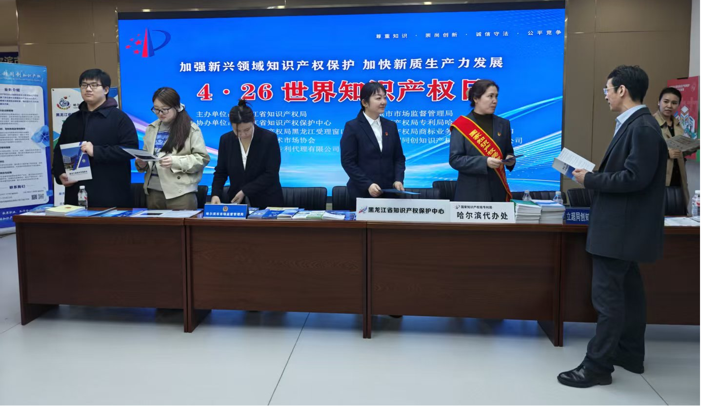 近日,由黑龍江省知識產權局、哈爾濱市市場監督管理局聯合主辦,黑龍江省知識產權保護中心、國家知識產權局專利局哈爾濱代辦處、國家知識產權局黑龍江受理窗口、國家知識產權局商標業務哈爾濱受理窗口、黑龍江省技術市場協會及相關知識產權服務機構共同協辦的『嚴護創新、智惠民生』知識產權保護宣傳活動,在哈爾濱市民大廈成功舉辦。