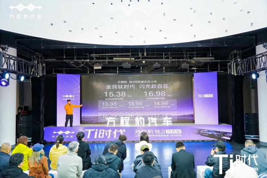 本次煥新而來的鈦3閃充版,共推出620KM後驅閃充版、565KM四驅閃充版2個配置版本,售價15.38萬-16.98萬。備受期待的鈦7EV閃充版也同步開啟預訂,價格區間為22萬-25萬。這代表著閃充技術在鈦系列上全面搭載,方程豹鈦系列也將成為比亞迪閃充的首個量產車型,並率先開啟交付。