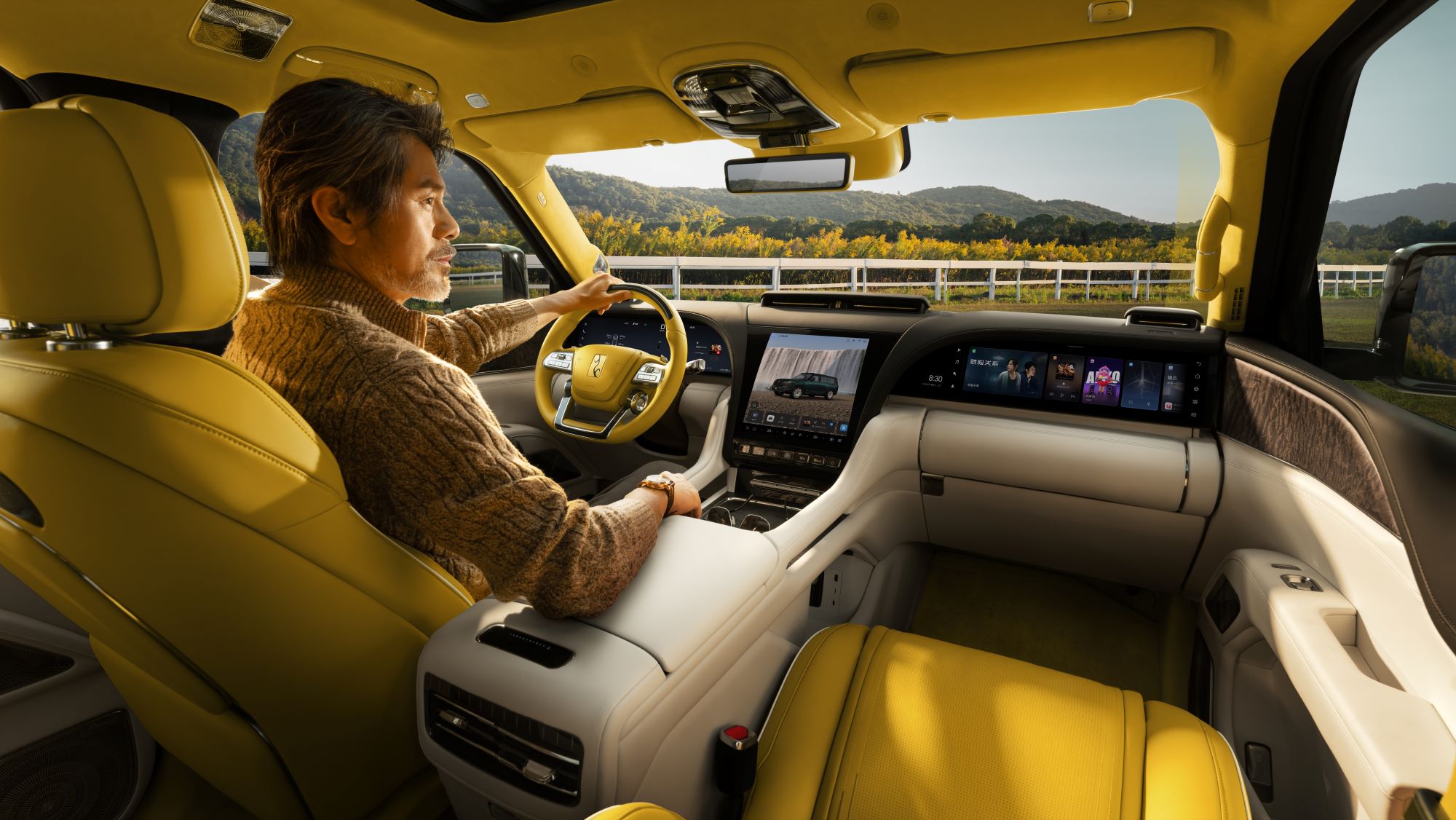 向外溫潤如玉,向內則心懷山河。U8L鼎藏版新增全新內飾配色『鳴沙金』,明亮的黃白拼色,宛如日出時敦煌鳴沙山和月牙泉的碰撞。座椅特別定制了山紋刺繡座椅,取形於『絲綢之路的生命線』——祁連山脈的輪廓,融入刺繡工藝書法筆墨意蘊。配合座艙前部飛流瀑布曲面屏設計,構築出『前有江河奔湧,後有群山倚靠』的遼闊氣勢。
