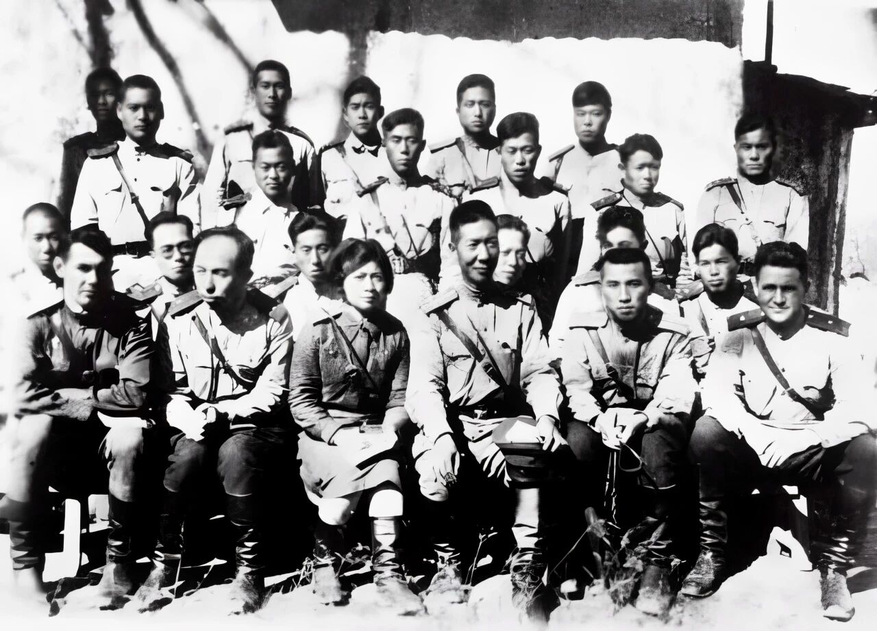 李兆麟(左二)和周保中(左四)與東北抗聯教導旅部分官兵