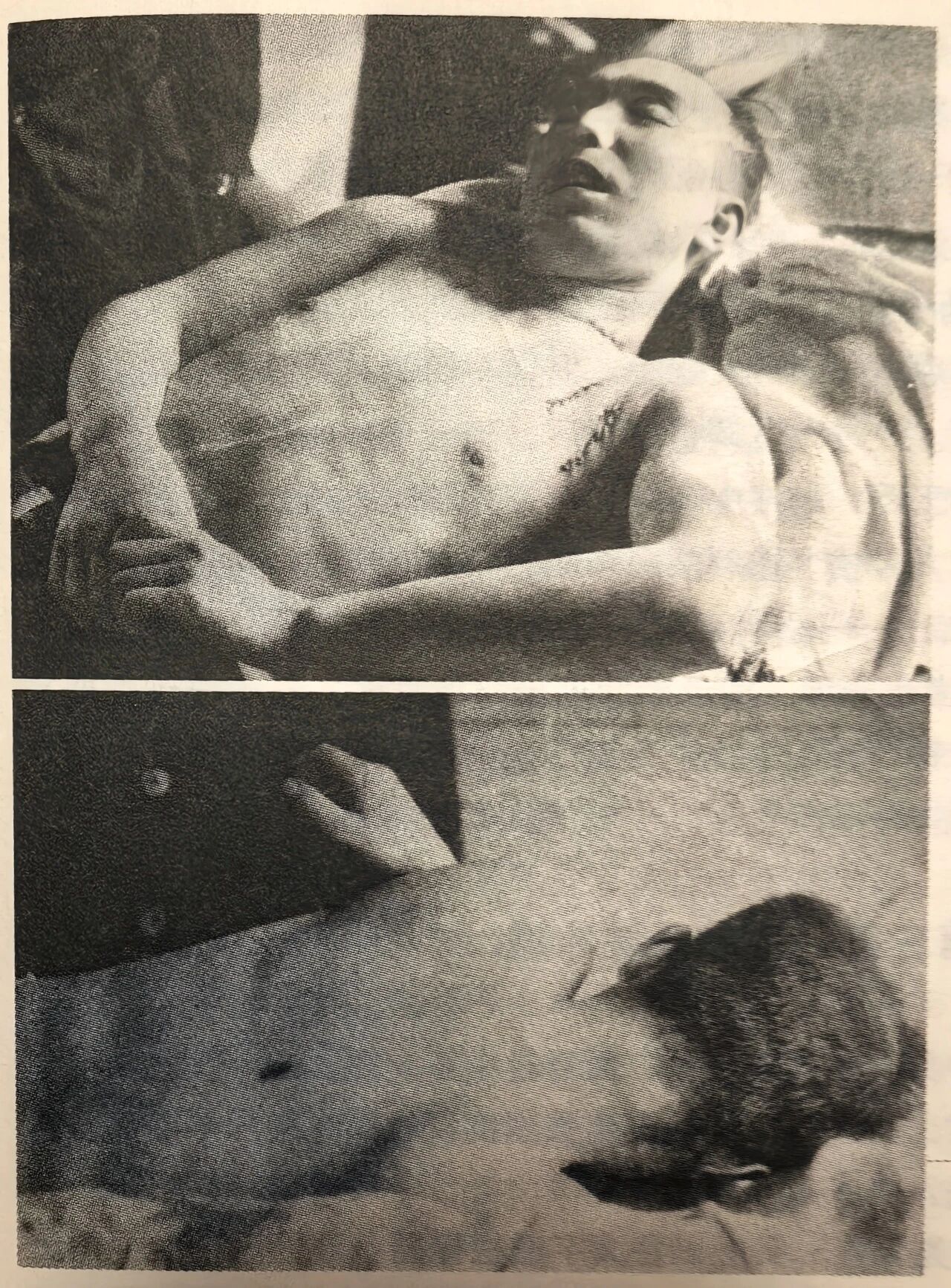 李兆麟遺體照,黑點處為敵特洞穿心髒的致命一刀