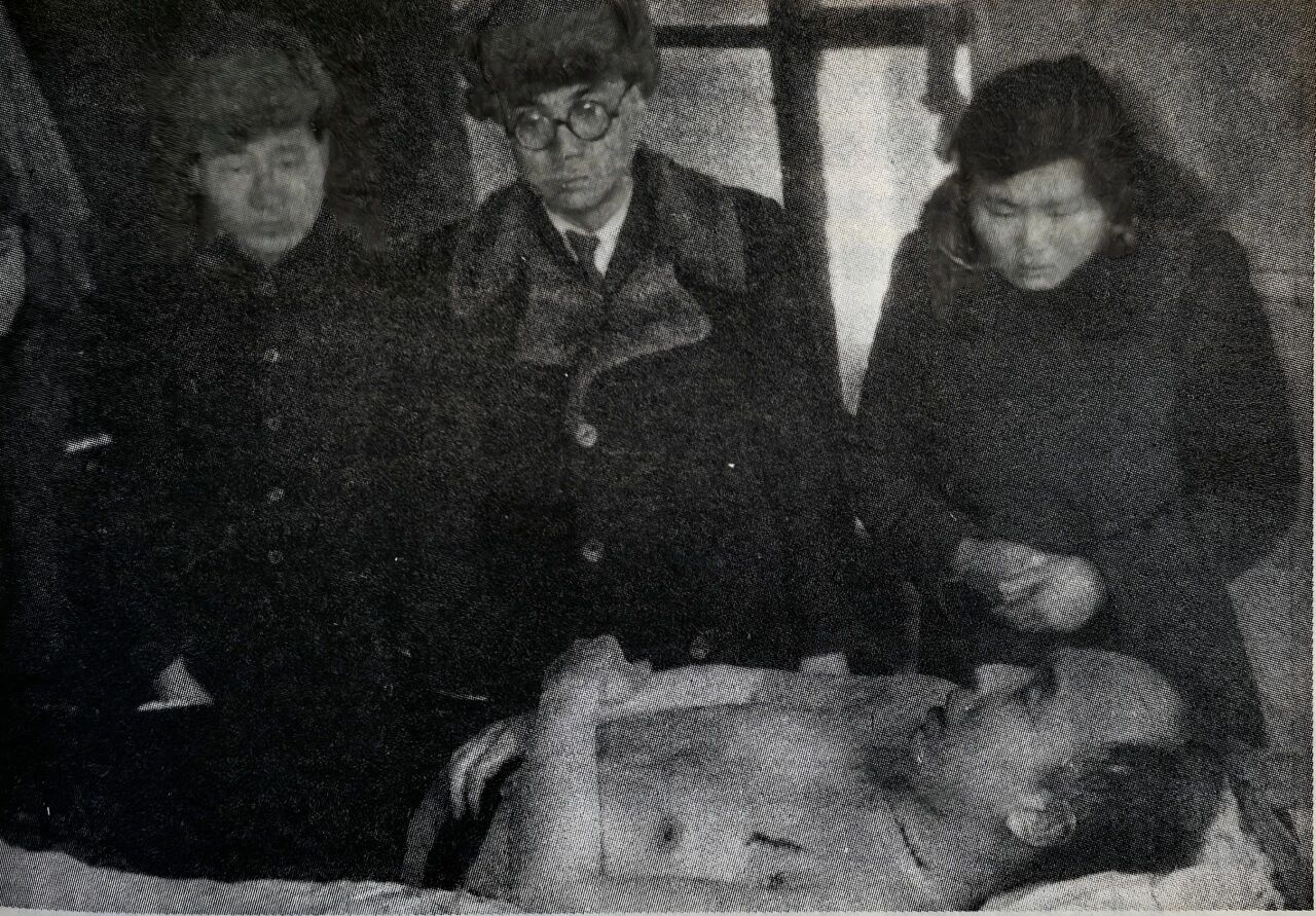 馮仲雲(右二)、金佰文(右一)在李兆麟遺體旁